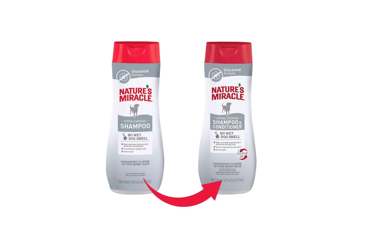 - Легко смываемая формула сокращает время купания собаки.