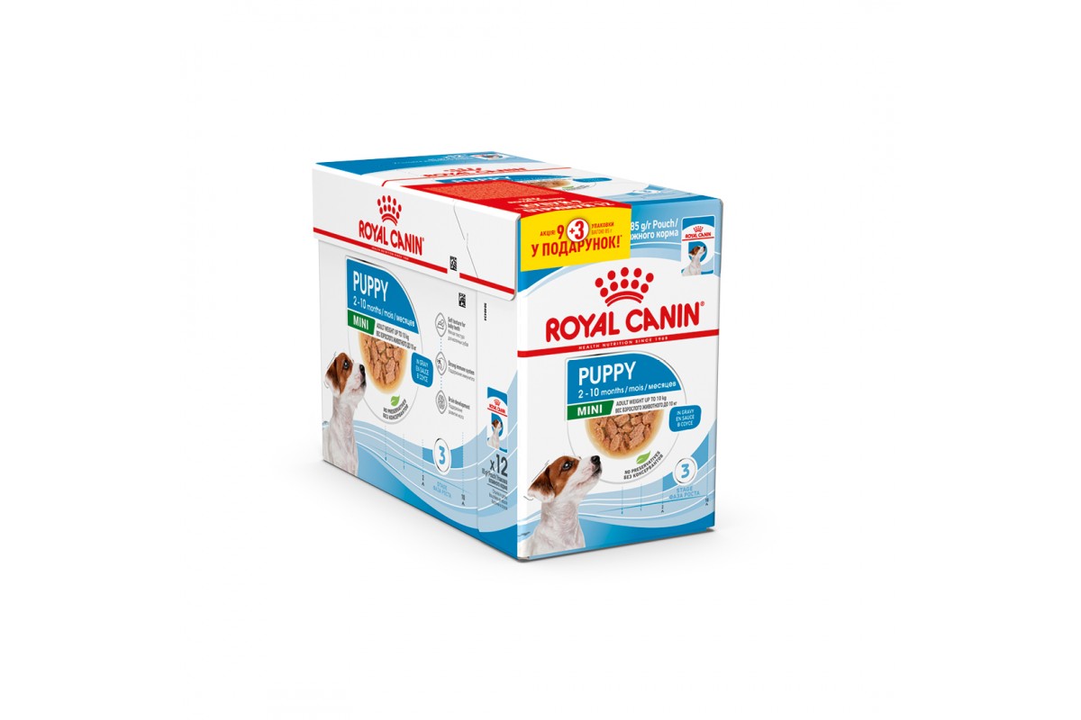 Акция Royal canin MINI PUPPY 0.085kg - упаковка 9шт +3шт в подарок