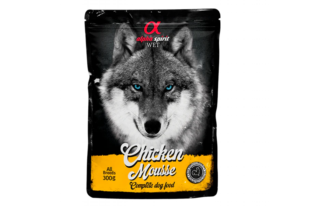Паучи Alpha Spirit Chicken Mousse – это полнорационный влажный корм и отличное дополнение к сухому рациону вашей собаки. ционов.