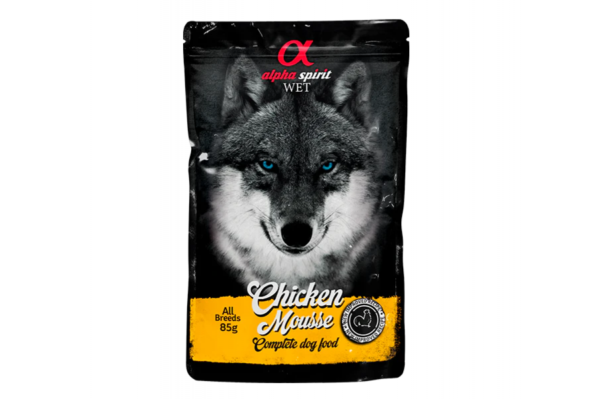 Паучи Alpha Spirit Chicken Mousse – это полнорационный влажный корм и отличное дополнение к сухому рациону вашей собаки. ционов.