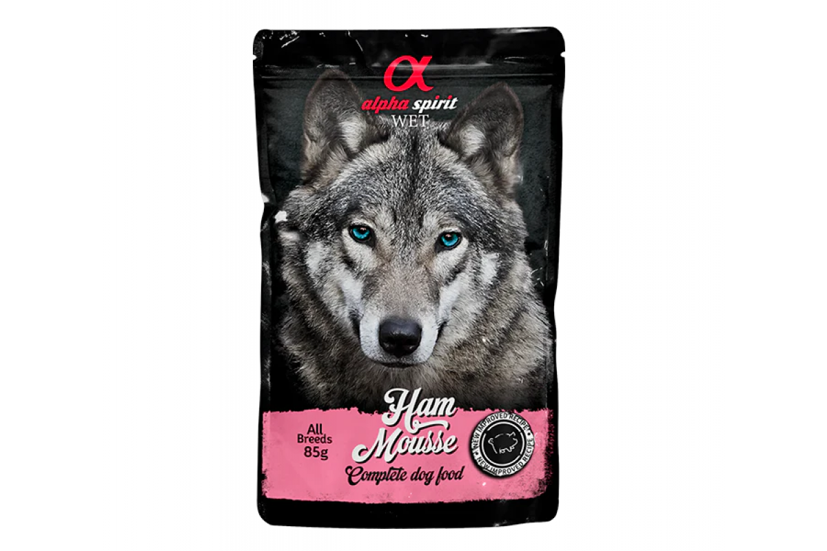 Влажный корм Alpha Spirit MOUSSE, для взрослых собак, ветчина, мусс, 85 г