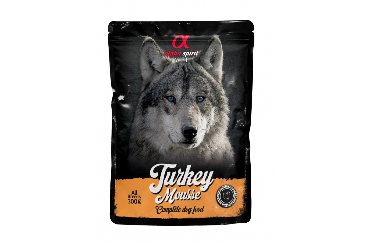 Влажный корм Alpha Spirit MOUSSE, для взрослых собак, индейка, мусс, 300 г