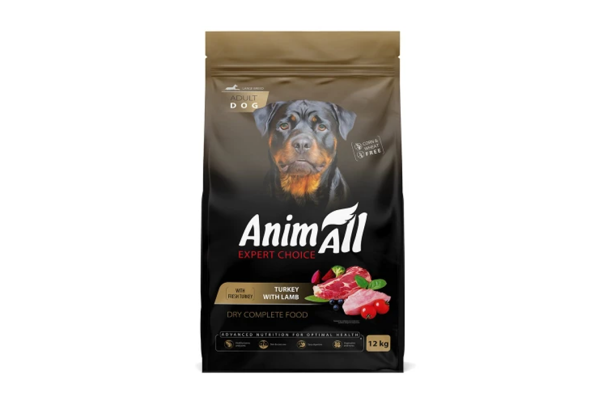Полнорационный сухой корм Animall, для собак больших пород со свежей индейкой и ягненком, 12 кг