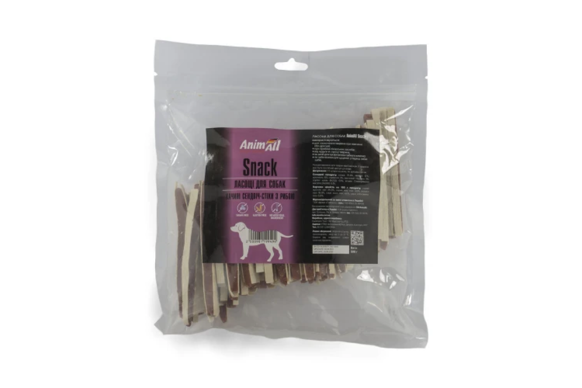 Лакомство AnimAll Snack утиные сэндвич-стики с рыбой для собак 500 г, 99494