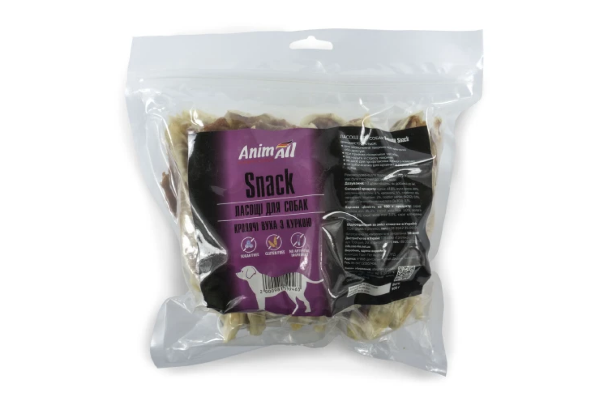 Лакомство AnimAll Snack кроличьи уши с курицей для собак 500 г, 99463