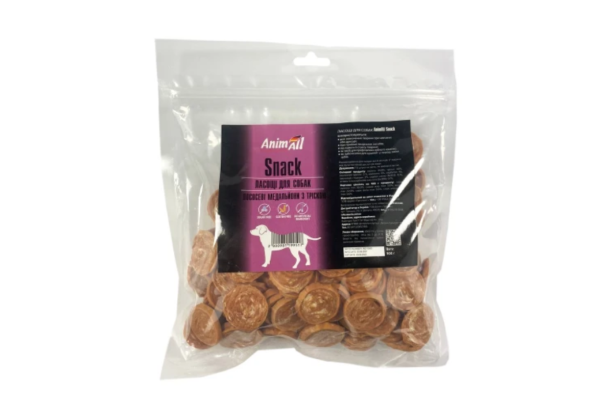Лакомство AnimAll Snack лососевые медальоны с треской для собак 500 г, 99517