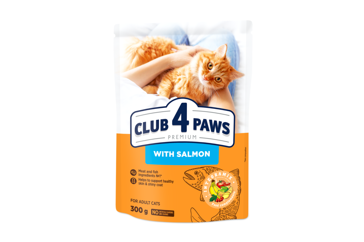 Сухой корм Club 4 Paws (Клуб 4 лапы) ПРЕМИУМ Salmon, для взрослых кошек, с лососем, 300 г