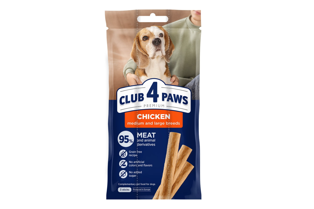 Club 4 Paws Premium Chicken medium and large breeds - Мясная палочка с курицей для взрослых собак средних и больших пород.
