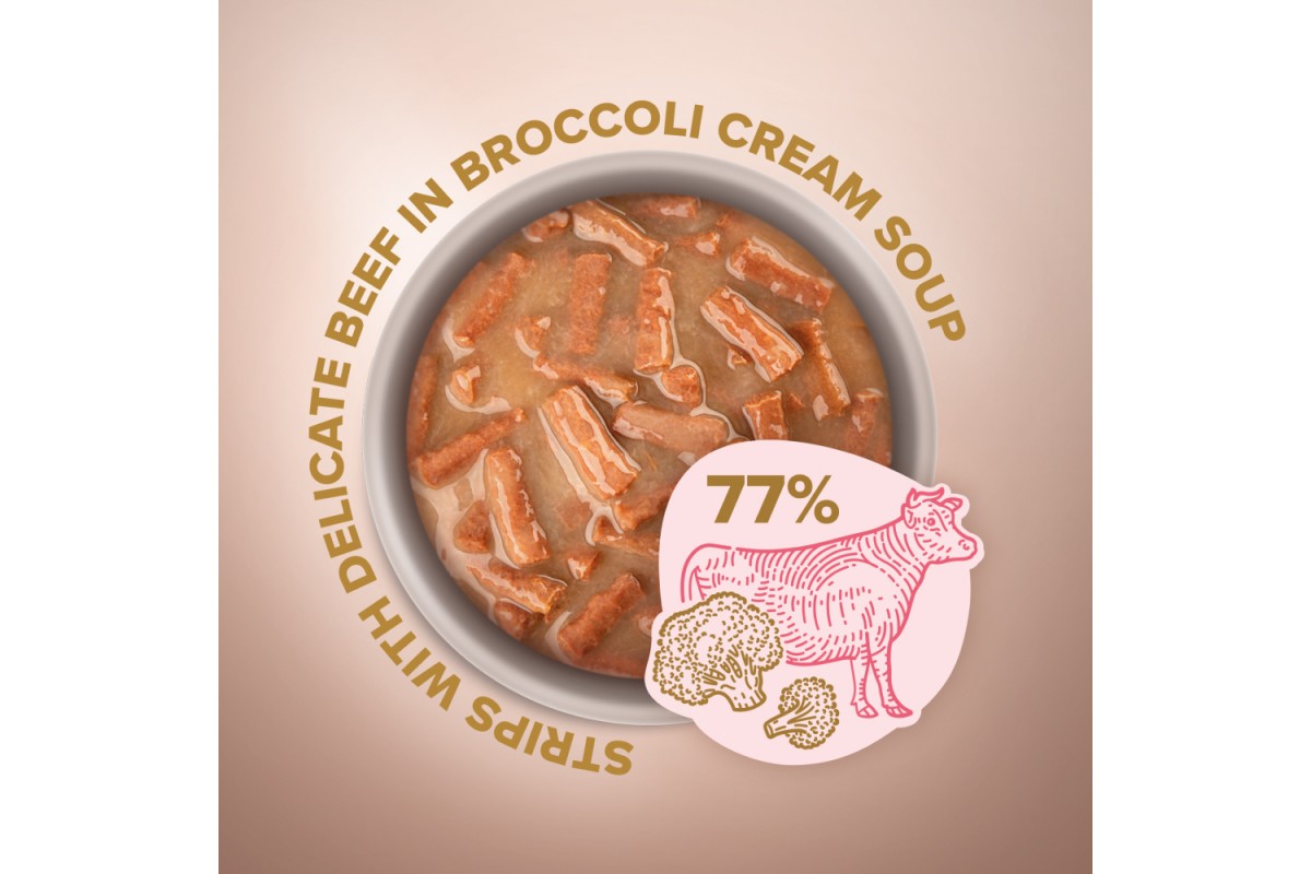 Питательный влажный рацион Club 4 Paws с полосками говядины в крем-супе из брокколи для всех взрослых кошек