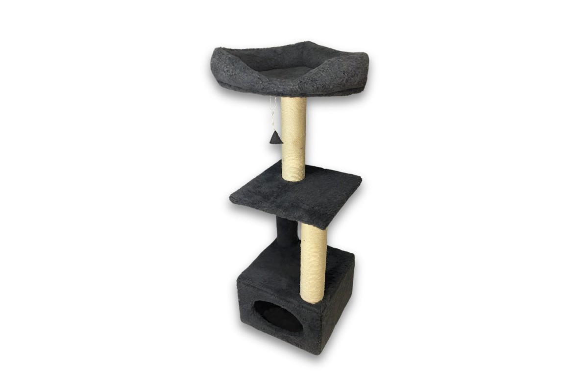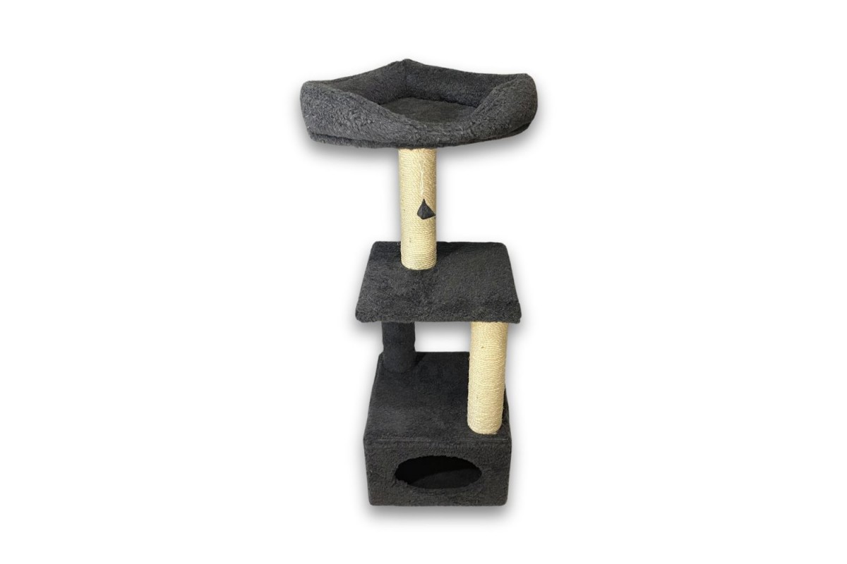 Когтеточка с домиком, площадками на столбиках и игрушкой очень понравится молодым энергичным животным и станет находкой для хозяев, которые хотят спасти мебель, двери, занавески и другие предметы интерьера от острых коготков питомца. Развлекательный комплекс с домиком позволит направить энергию котика в нужное русло: по площадкам можно прыгать, барабан станет местом для отдыха и игры с подвеской, столбики-когтеточки с обмоткой из сизаля позволят удовлетворить естественные потребности в затачивании когтей.