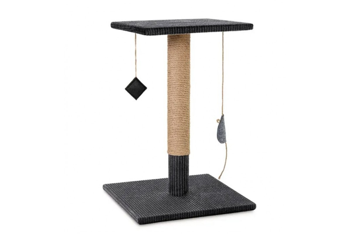 Когтеточка «Феликс» – это компактная стойкая площадка, обтянутая искусственным мехом, со столбиком для царапания. Сверху на столбике закреплена площадка для отдыха любимца. Обмотка столбика изготовлена из джута – натурального прочного волокна. Царапка легко чистится от шерсти. Чтобы вашему котику было веселее, на верхней площадке царапки закреплены на шнурках две игрушки – мышка и помпон.
