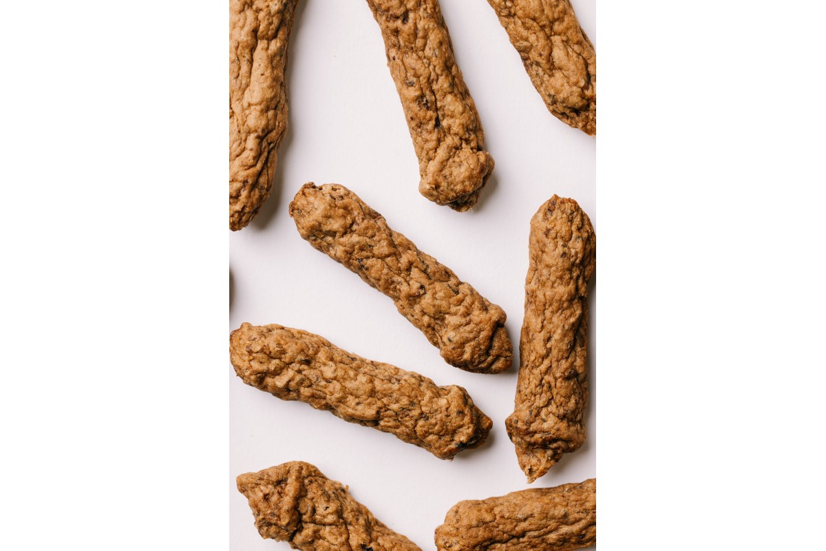 Джерки для взрослых собак Батончики с оленем состоят на 87% из настоящего мяса оленя, индейки и курицы, не содержат ГМО, не содержат зерновых.