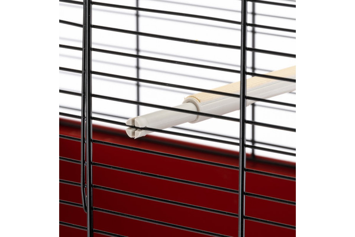 Record 3 - прямоугольная клетка средних размеров, идеально подходит для канареек, экзотических и других маленьких птиц. Идет в комплекте с аксессуарами, среди которых: пластиковые жердочки с резиновым покрытием, поворотные кормушки Brava 2, поилка, прищепки для подкормки и игрушка с зеркалом. Чистить клетку легко и удобно благодаря выдвижному подносу для сбора мусора, а вместительный поддон предотвращает высыпание мусора. Клетка Record 3 выпускается в 2-х вариантах: с белой или черной решеткой. Вы можете выбрать понравившуюся вам модель и разместить ее на подходящей пластиковой подставке.