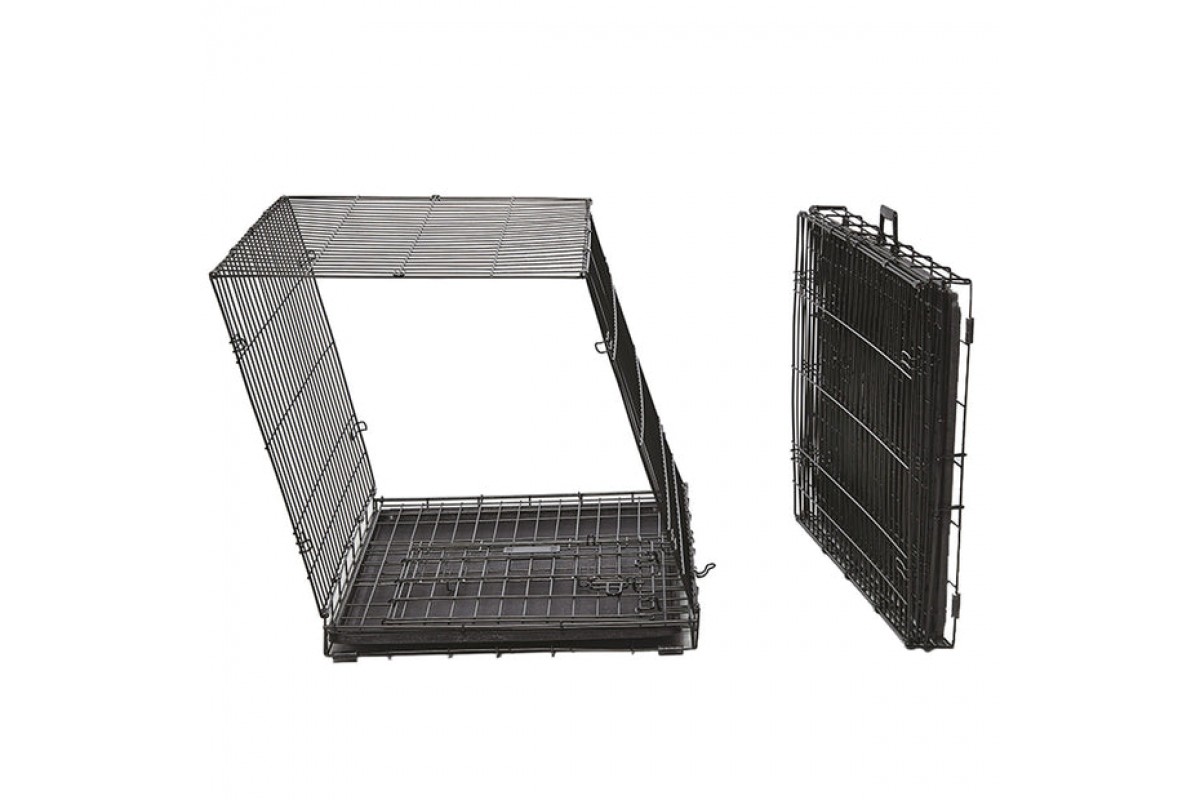 Металлическая клетка для малых пород собак. Конструкция позволяет адаптировать размеры внутреннего пространства по мере роста щенка. Две дверки (фронтальная и боковая) с замками с запатентованным механизмом. Съемный пластиковый поддон для легкой уборки. Прутья покрыты антивандальной краской, устойчивой к острым зубам и когтям.