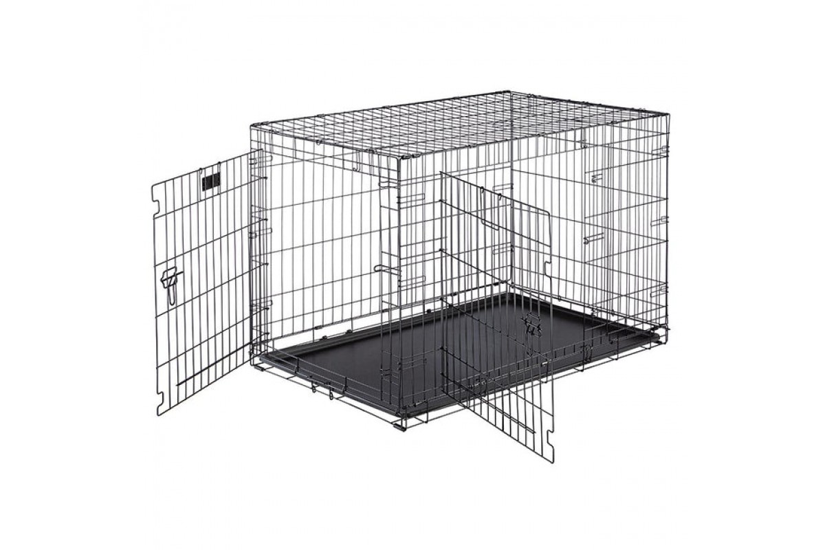 Металлическая клетка для малых и средних пород собак. Конструкция позволяет адаптировать размеры внутреннего пространства по мере роста щенка. Две дверки (фронтальная и боковая) с замками с запатентованным механизмом. Съемный пластиковый поддон для легкой уборки. Прутья покрыты антивандальной краской, устойчивой к острым зубам и когтям.