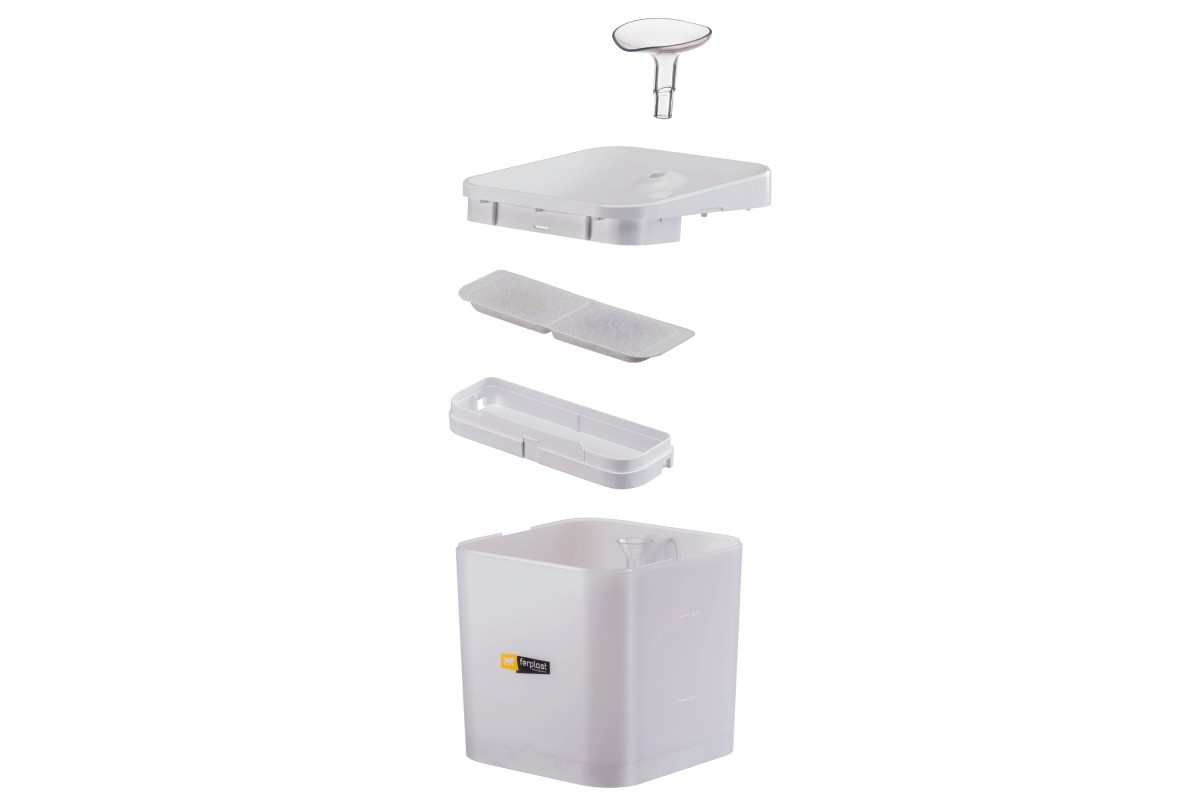 Ares легко чистить, поскольку верхняя часть легко отделяется от основания. Фильтр для питьевого фонтанчика Ares можно также приобрести как запасную часть.
