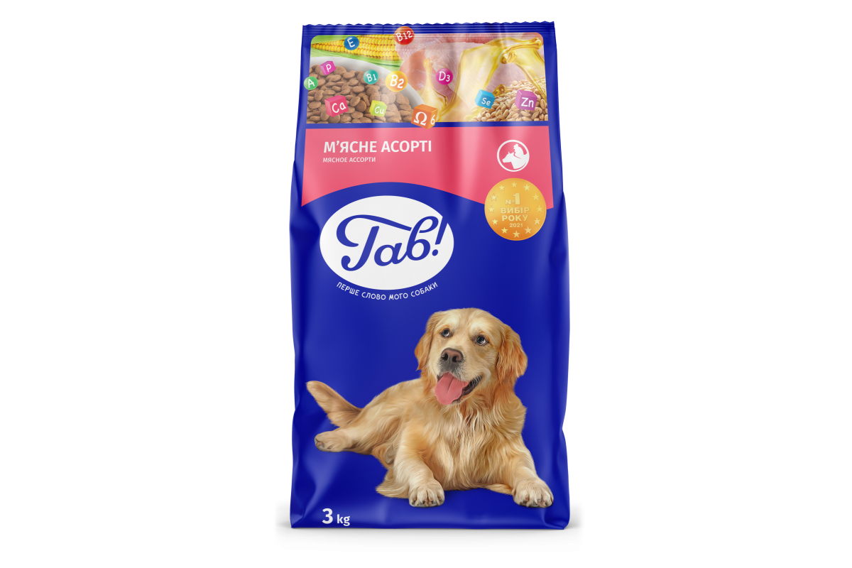 Сухой корм Гав! для взрослых собак, мясное ассорти, 3 кг