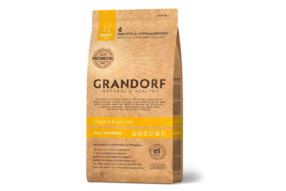 Grandorf Грандорф 4 Meat & Brown Rice Adult Mini - Грандорф Сухой корм 4 вида мяса с бурым рисом для мини пород от 1го года, 8 кг