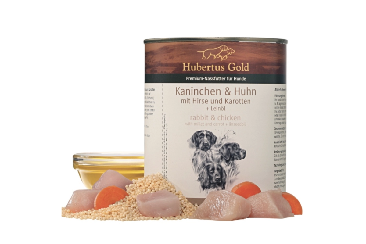 Влажный корм HUBERTUS GOLD Kaninchen & Huhn, кролик и курица с пшеном и морковью, 800 г