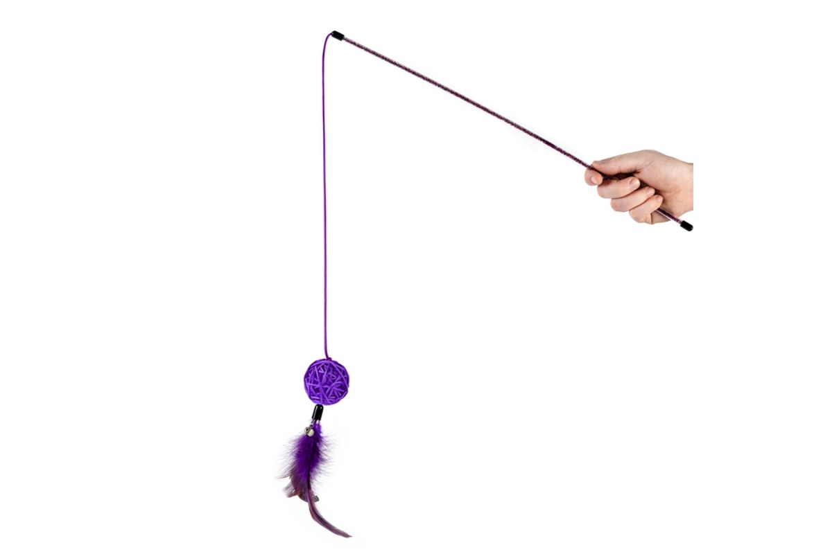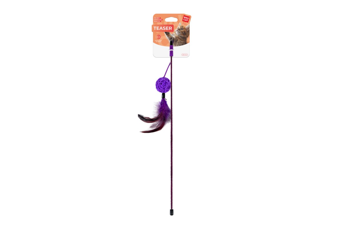 Игрушка для кошек WAUCAT Fun Teaser дразнилка с плетеным мячиком, пластик, дерево, перо, 50 см