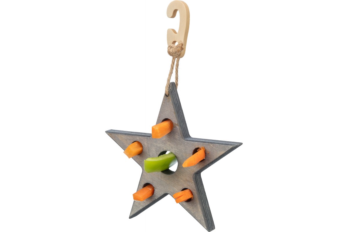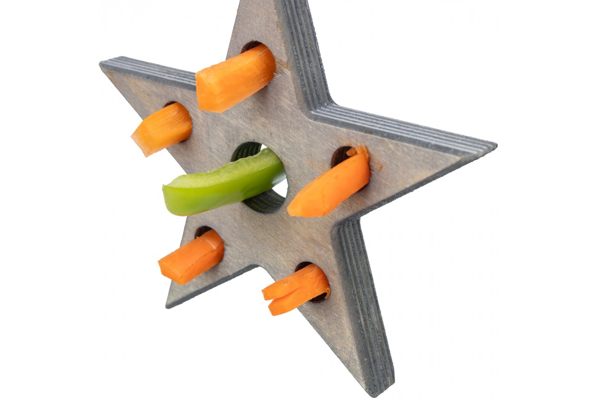 Игрушка «Звезда для грызунов – это весело, интересно и вкусно! Ваш любимец будет в восторге от такого развлечения, ведь понадобится изрядно постараться, чтобы извлечь из звездочки любимые лакомства. Игрушка изготовлена из безопасных 100% натуральных материалов и способствует физической активности грызунов.