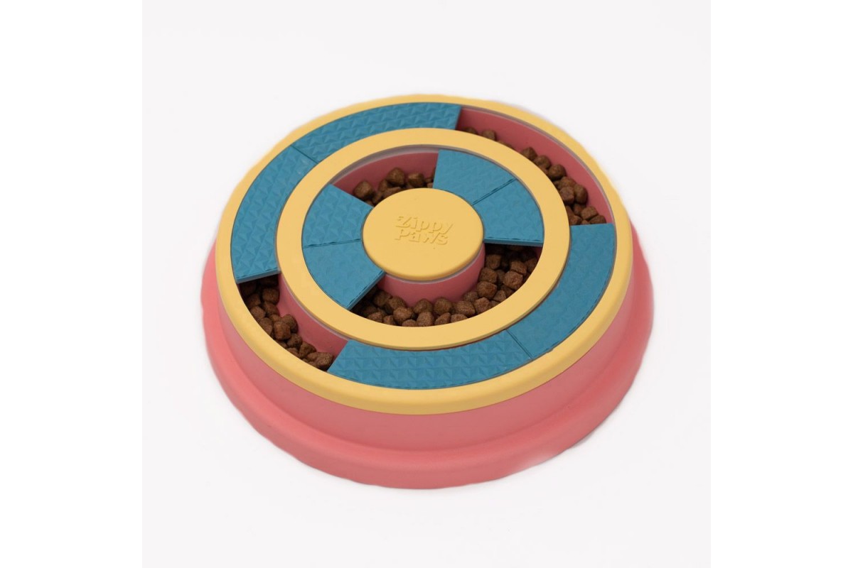 Головоломка SmartyPaws Wagging Wheel Puzzler Feeder Bowl – это совершенно новая интерактивная игрушка-головоломка от ZippyPaws, которая одновременно служит миской для медленной кормушки для желающих есть. Колесо Wagging Wheel имеет текстурированные скользящие панели, которые делают пищу легким вызовом и доставляют массу удовольствия!
