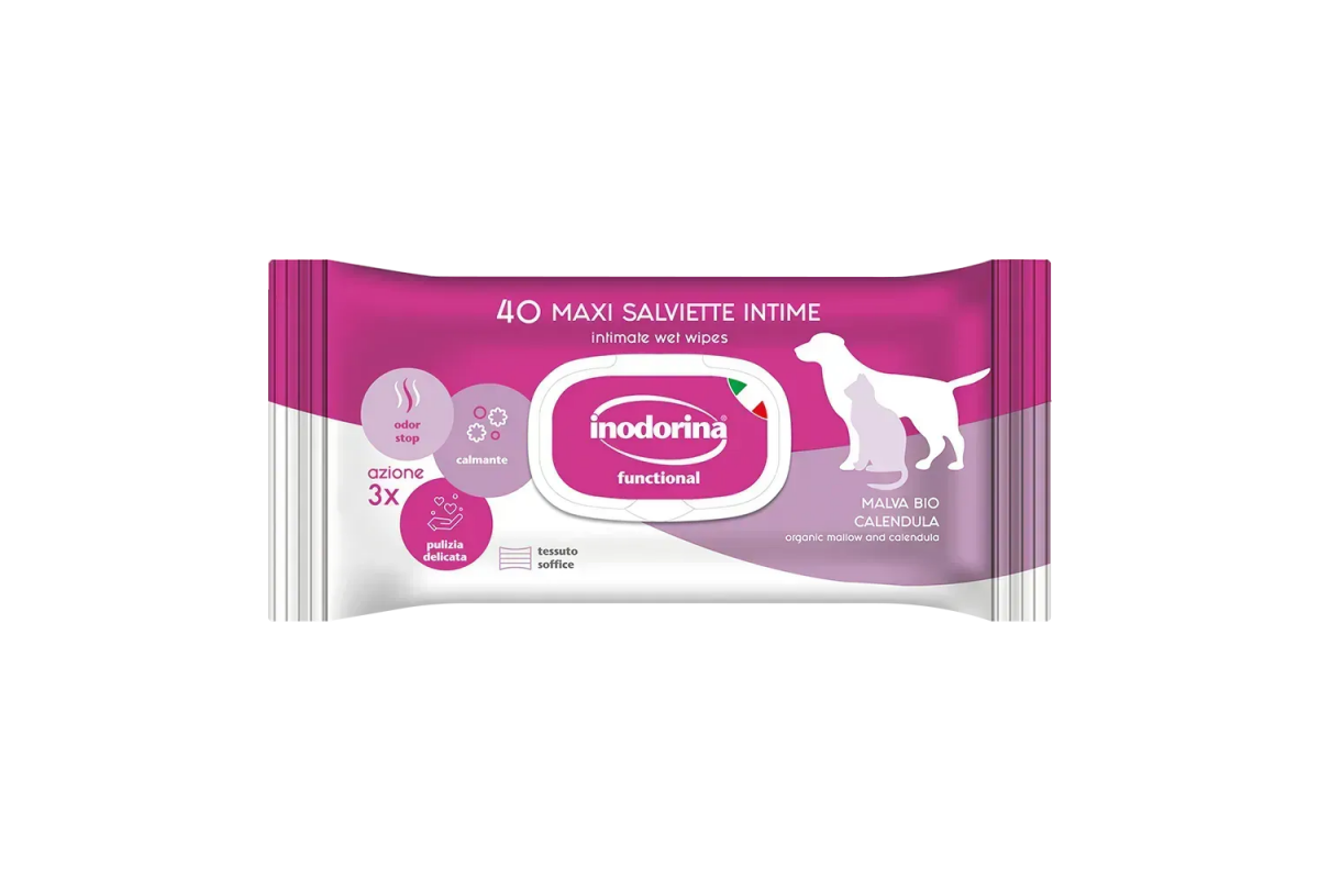 Inodorina Functional Intime - Вологі серветки для інтимної гігієни собак та котів із екстрактами мальви та календули, 40 шт