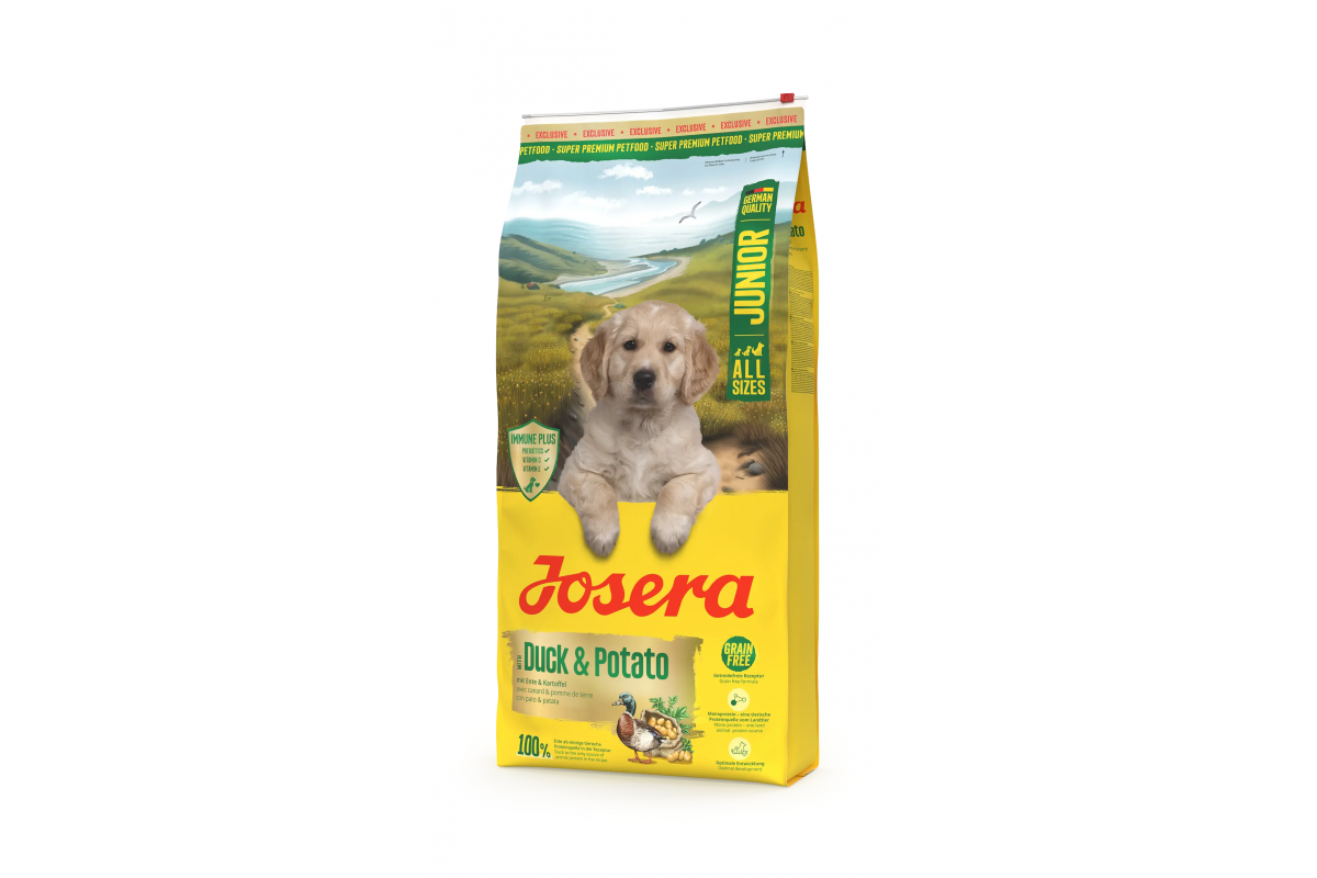 Наш абсолютный фаворит также доступен для щенков: Josera Junior Duck & Potato – корм для кормления со 100% уткой и вкусным картофелем. Умеренное содержание энергии и сбалансированное соотношение кальция и фосфора поддерживают структуру костей вашей молодой собаки, способствуя таким образом оптимальному развитию. Беззерновой рецепт базируется на рецепте нашего классического корма Duck&Potato, поэтому его можно кормить во взрослом возрасте, а затем легко менять. Как единственный источник белка наземных животных, утка обеспечивает отличную усвояемость и восприятие. Корм также содержит ценный порошок из мидий. Наша Josera IMMUNE PLUS также поддерживает здоровую иммунную систему. *Josera IMMUNE PLUS Клеточные стенки дрожжей богаты глюканами и маннанами (МОС), которые имеют пребиотическое действие и поэтому могут поддерживать иммунную систему. Ценные антиоксиданты, такие как витамины С и Е, помогают бороться со свободными радикалами.