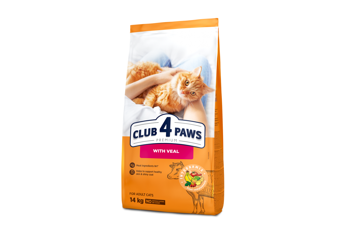 Сухой корм Club 4 Paws (Клуб 4 лапы) ПРЕМИУМ Veal, для взрослых кошек, с телятиной, 14 кг