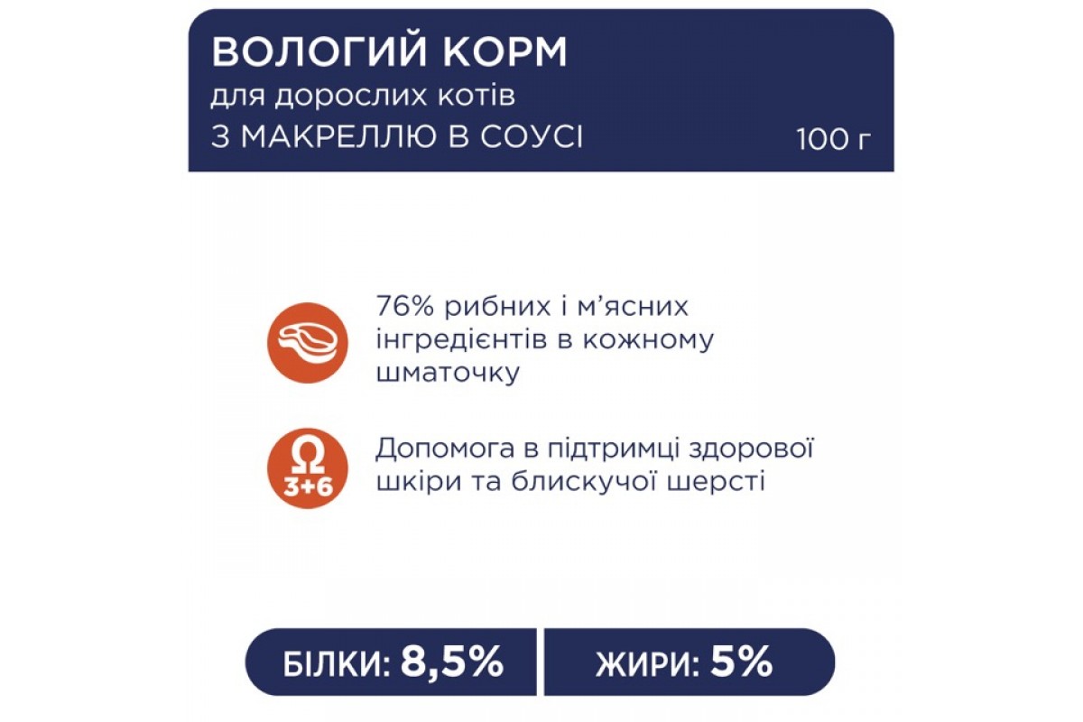 Club 4 Paws Premium с макрелей в соусе для кошек – это премиум-рацион, разработанный специально для удовлетворения потребностей взрослых кошек. Корм содержит высококачественные мясные и рыбные ингредиенты, составляющие 76% всего продукта. Аппетитный соус прекрасно сочетается с макрелью, создавая изысканный вкус.