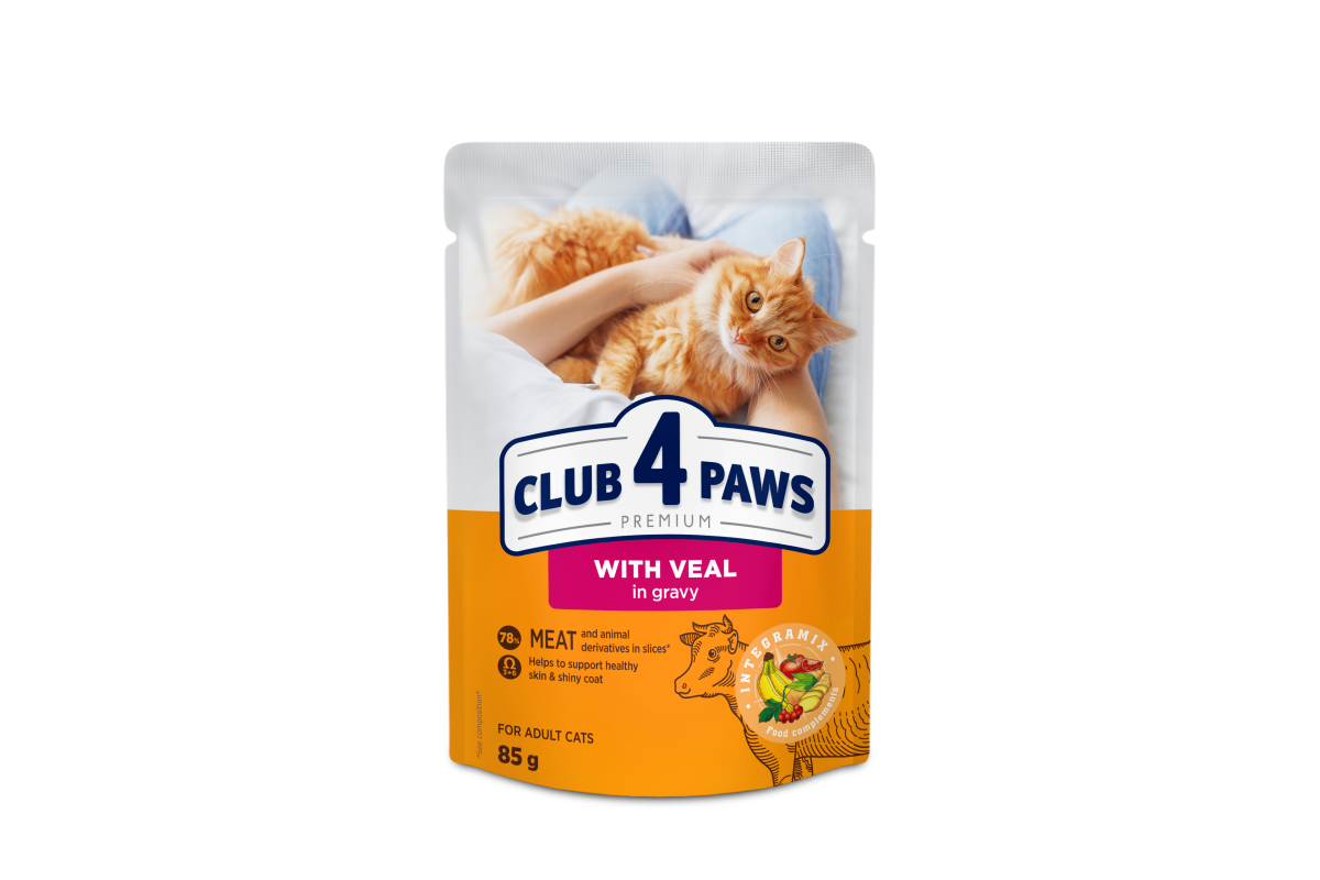 Club 4 Paws Premium с телятиной для кошек – это влажный рацион в изысканном соусе. Его вкус и аромат покорят сердце вашего пушистого гурмана. Ваш питомец будет наслаждаться каждым приемом пищи!