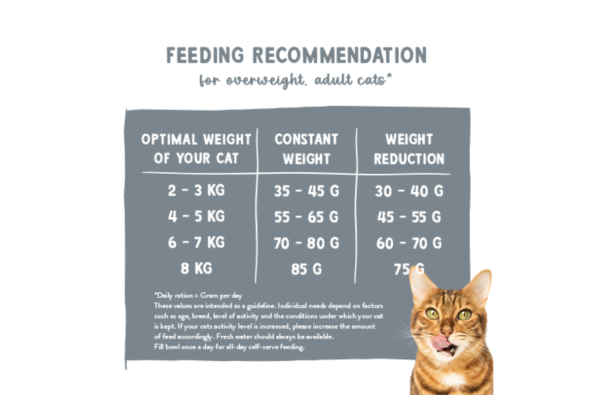 Рекомендовано для длительного кормления кошек с лишним весом, кастрированных или малоподвижных кошек – возможно после консультации ветеринара или в качестве профилактического средства.