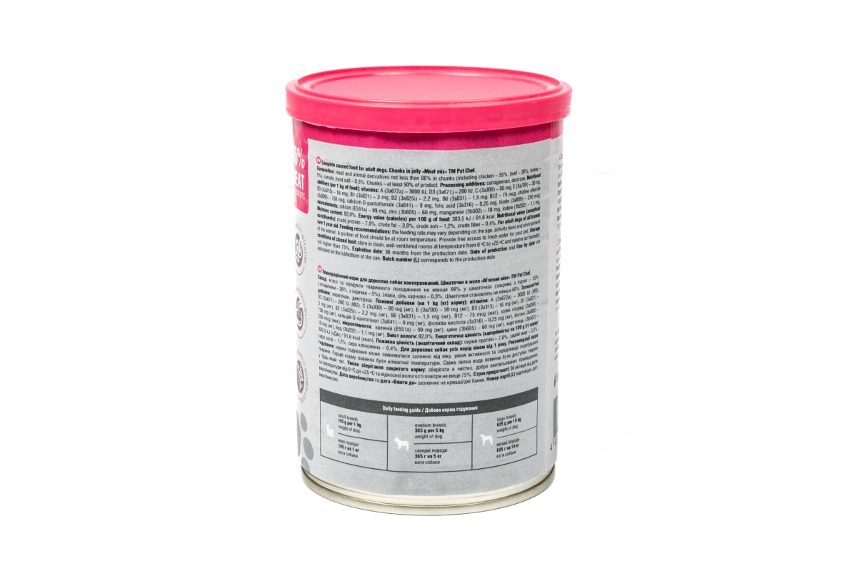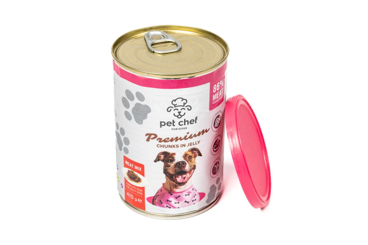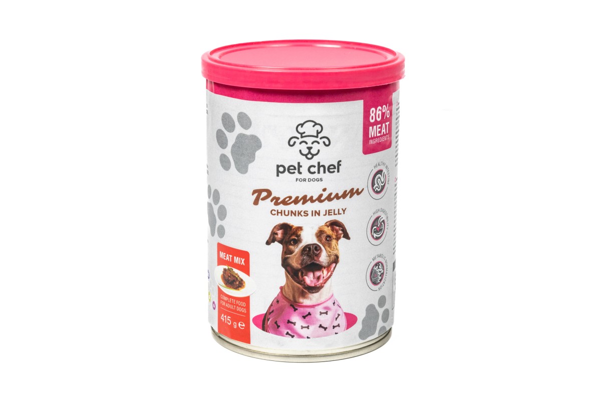 Корм влажный Pet Chef, Кусочки в желе для взрослых собак, Мясной микс, 415 г