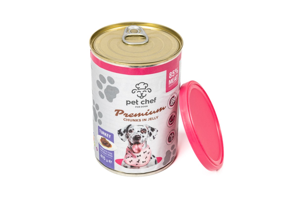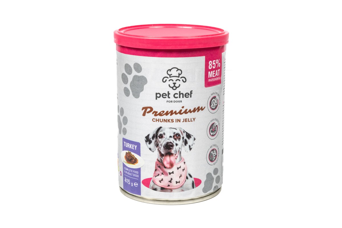 Корм влажный Pet Chef, Кусочки в желе для взрослых собак, с индейкой, 415 г