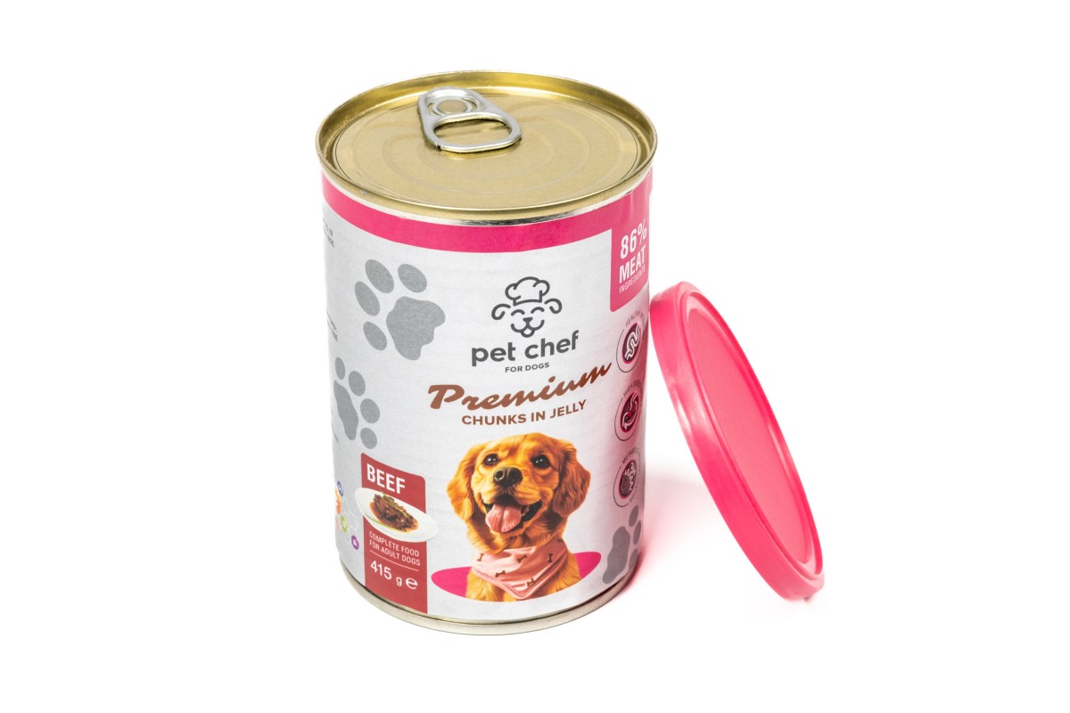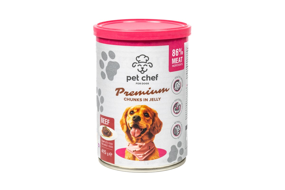 Корм влажный Pet Chef, Кусочки в желе для взрослых собак, с говядиной, 415 г