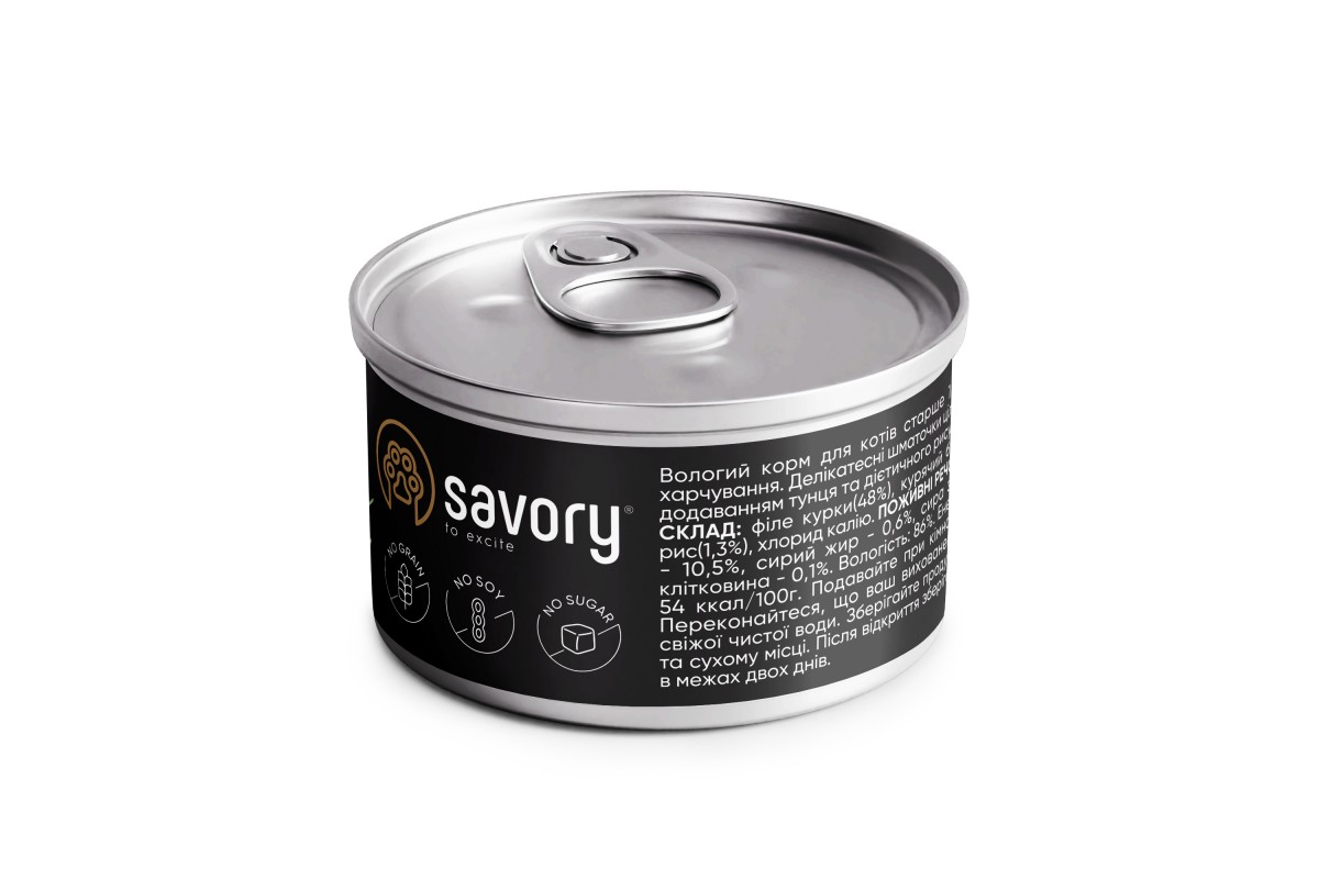 Влажный корм Savory Chicken Fillets rich in Tuna in Jelly for Adult Cats куриное филе с тунцом в желе для взрослых котов, 70 г