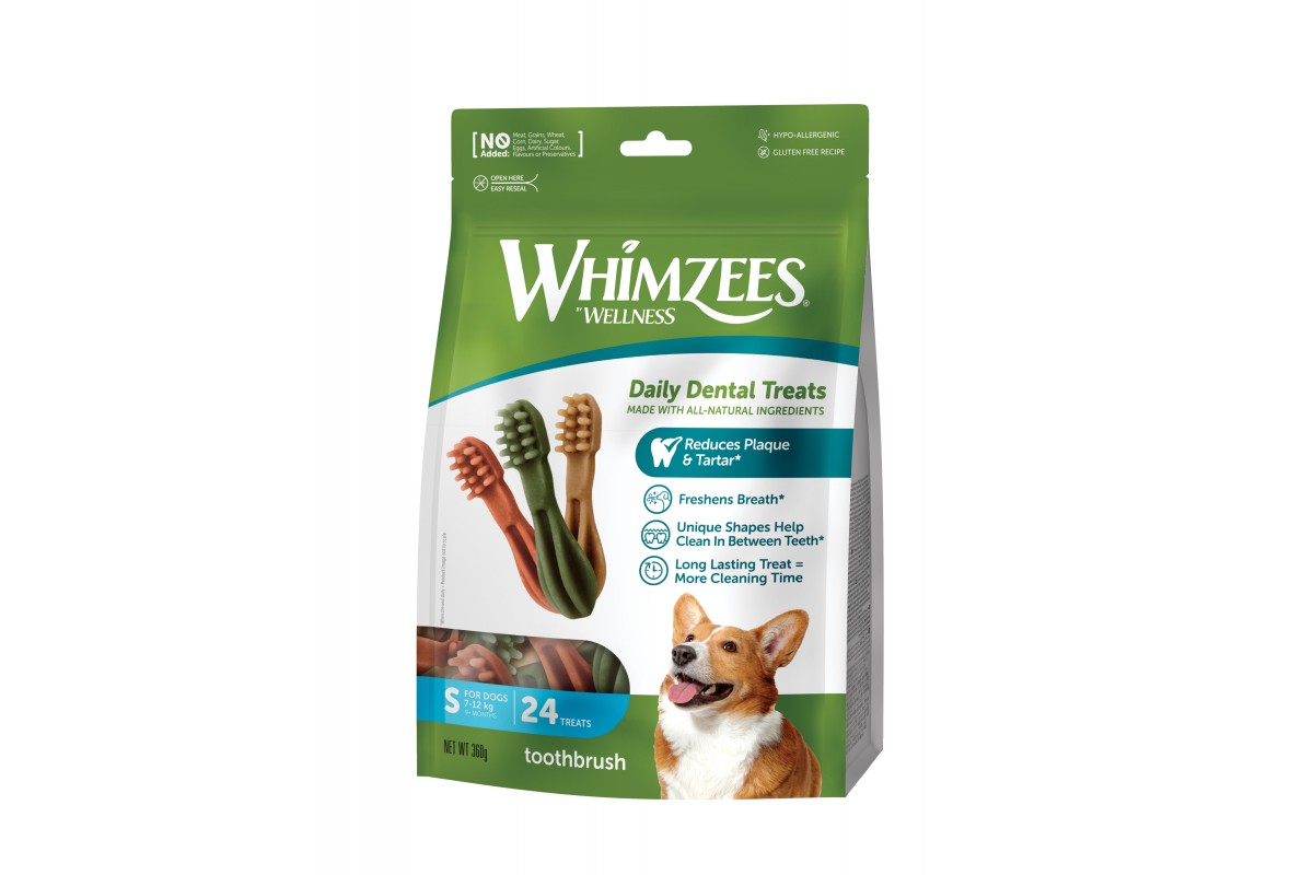Whimzees Toothbrush – ежедневное жевательное лакомство на полностью натуральной основе для ухода за зубами собак.