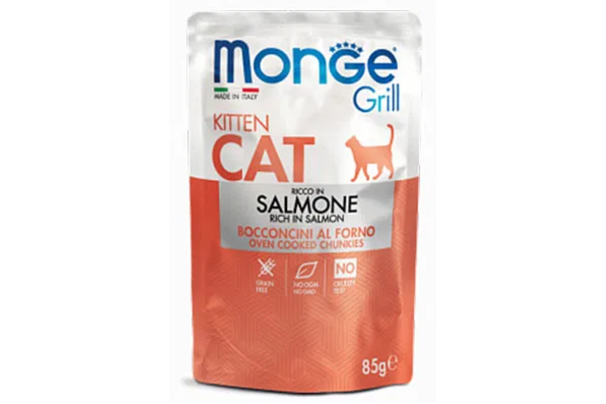 Monge Cat Grill Kitten лосось Полнорационный корм для котят Паучи с лососем 85 г