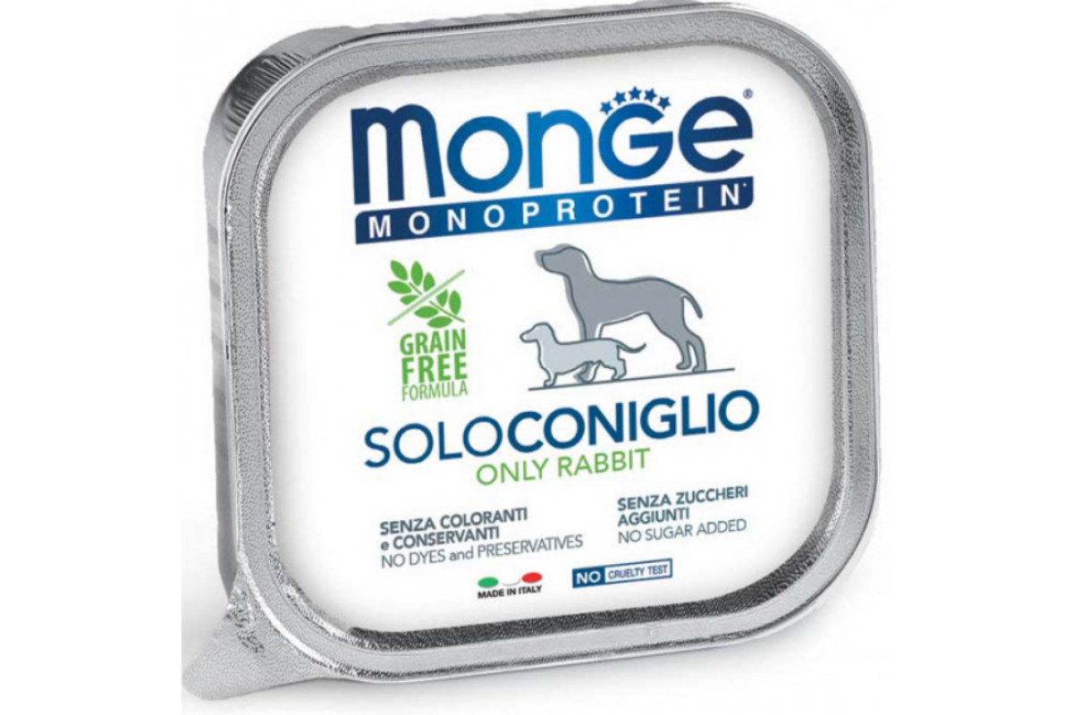 Monge Dog SOLO 100% кролик, монопротеиновое питание для взрослой собаки, Паштет с кроликом 150 г