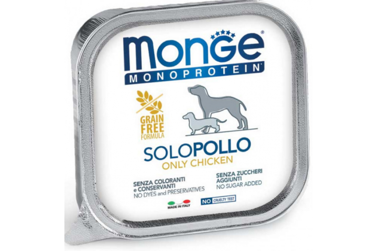 Monge Dog SOLO 100% курица, монопротеиновое питание для взрослой собаки, Паштет с курицей 150 г
