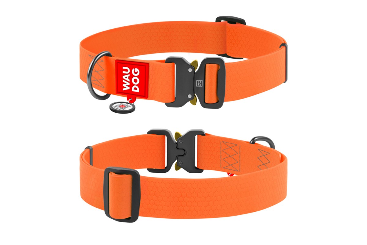 Ошейник для собак WAUDOG Waterproof с QR-паспортом, 40 мм, 46–70 см, оранжевый