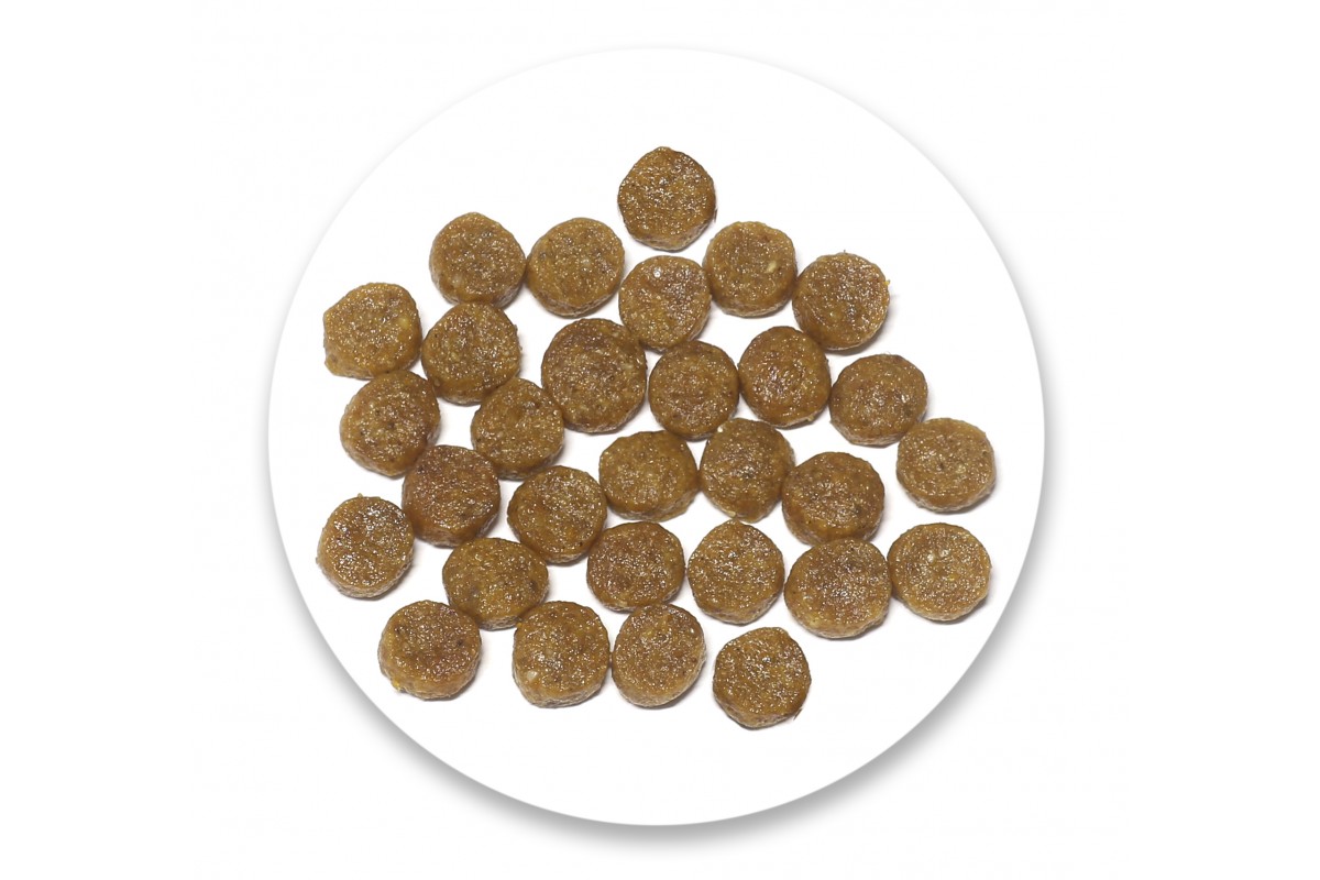 Аналитический состав / 1кг: сырой белок - 27%, сырая клетчатка - 3%, необработанные жиры - 16%, сырая зола - 8,5%, кальций - 1,4%, фосфор - 1%, калий - 0,6%, натрий - 0,4%, Омега-3 жирные кислоты - 0,46%, Омега-6 жирных кислот - 2,55%.