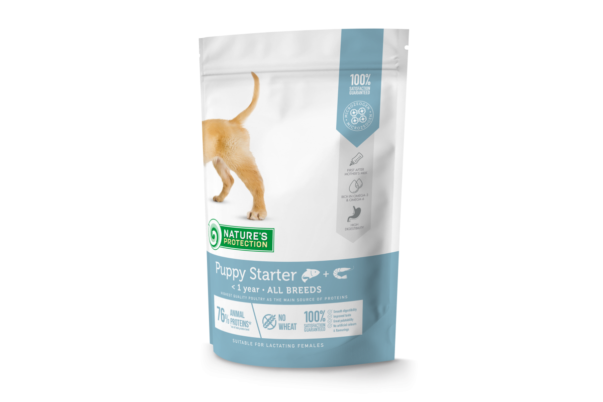 Сухой корм Nature's Protection Puppy Starter для щенков всех пород, c лососем и креветками, 500 г