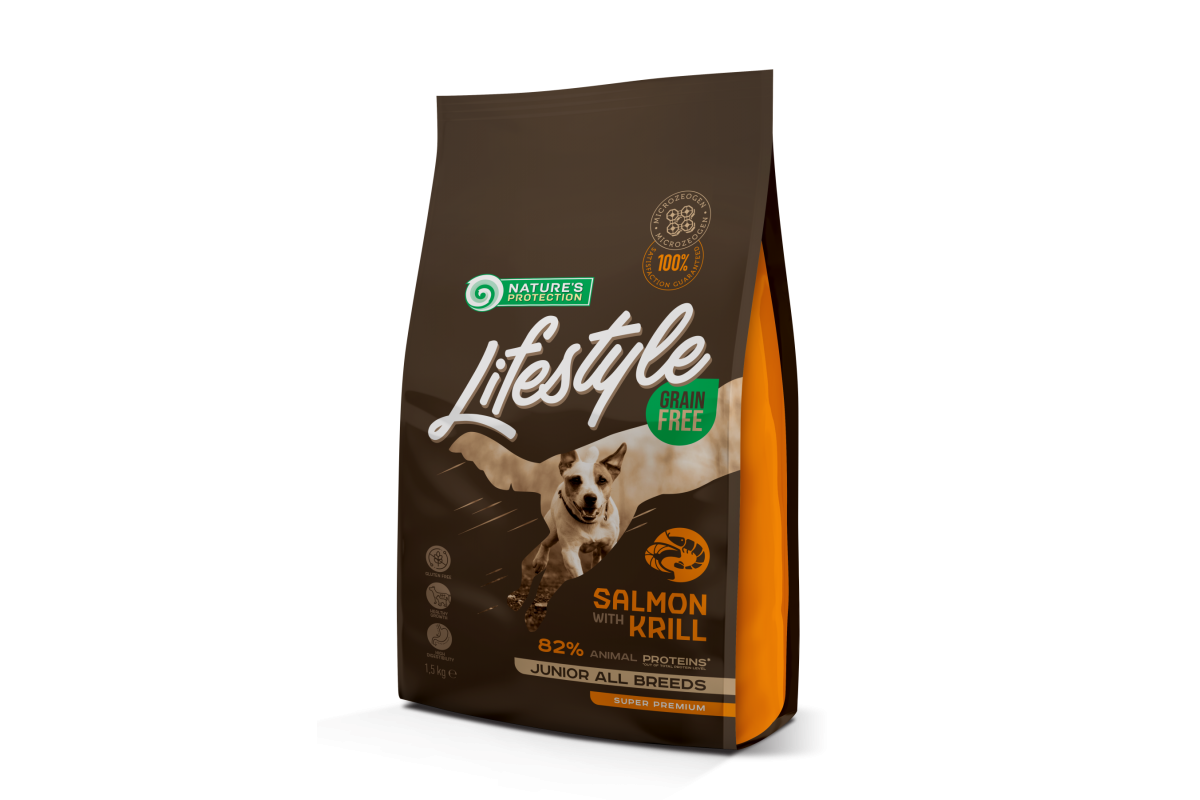 Сухой корм Nature's Protection Lifestyle Grain Free Junior для щенков, с лососем и крилем, 1.5 кг