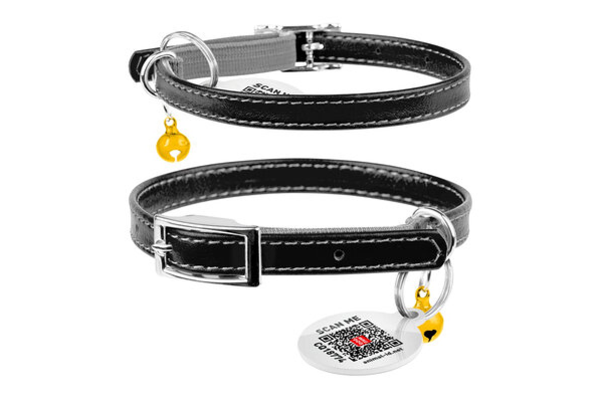 Ошейник для котов кожаный WAUDOG Glamour с QR паспортом, без украшений, Ш 9 мм, Дл 22-30 см, черный