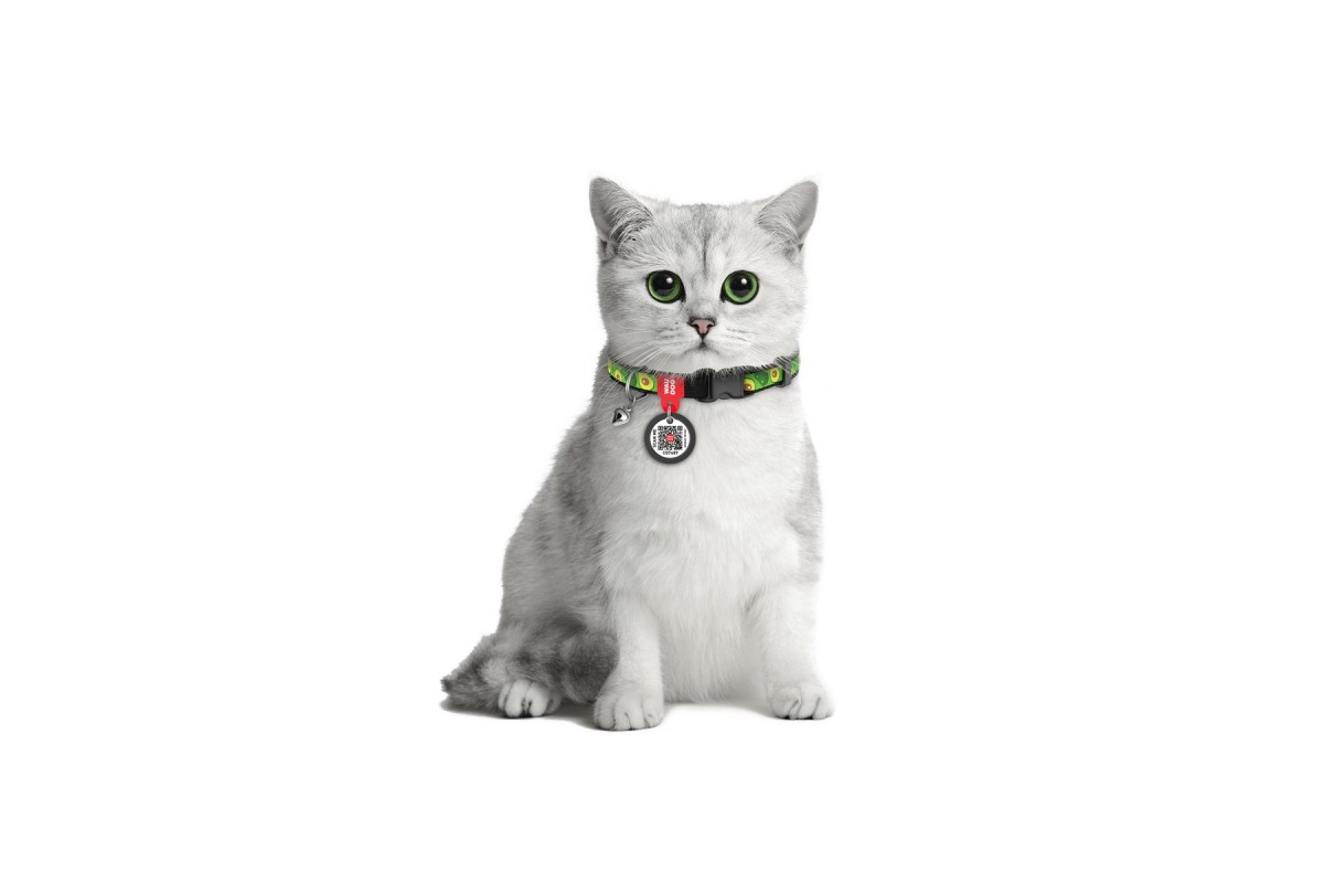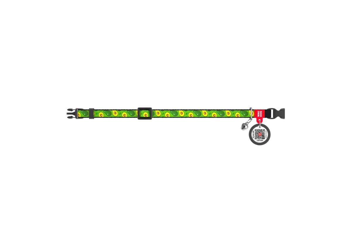 Ошейник для котов нейлоновый WAUDOG Nylon c QR паспортом, рисунок "Авокадо", пластиковый фастекс, XS, Ш 10 мм, Дл 20-30 см