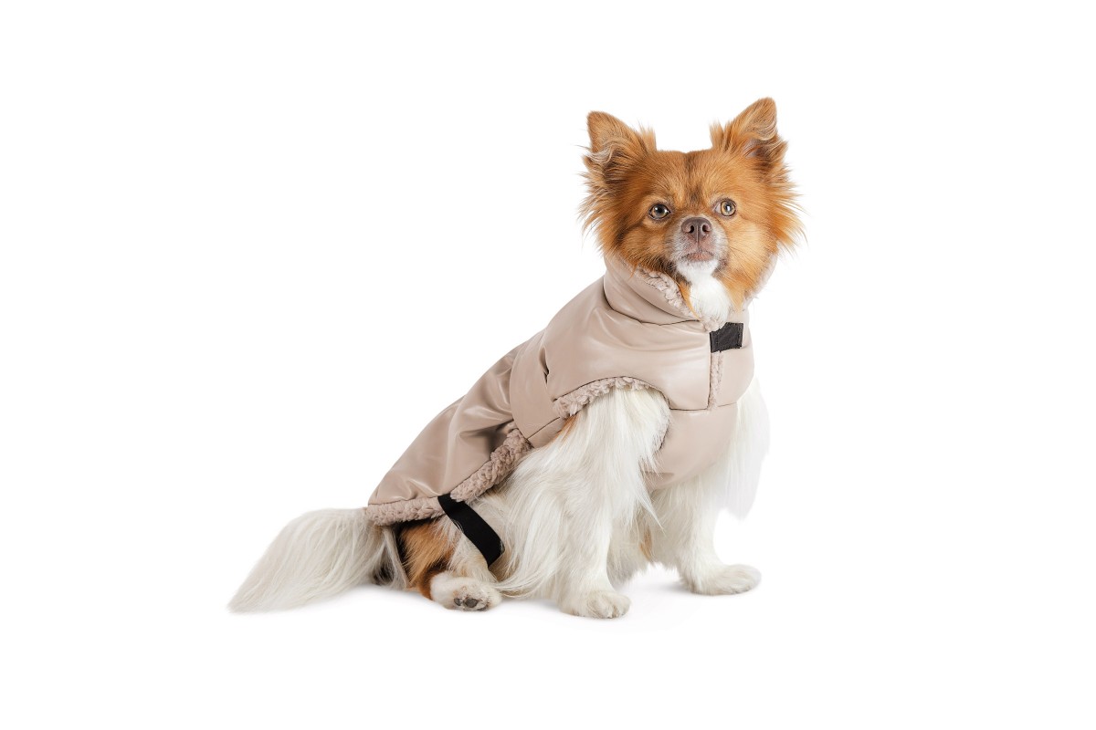 Очень стильный наряд для хвостатых модников, ценящих комфорт. Попона Mikki из экокожи очень элегантная и изысканная, а еще – чрезвычайно практичная. Экокожа отлично защищает от дождя и ветра, тепленькая подкладка из искусственного меха отлично согревает. Пояс на липучке позволяет подогнать модель по фигуре, а мягкие петли на задние лапки фиксируют ее на спинке, предотвращают скольжение. Ширину воротника можно регулировать с помощью липучки. Попона легко одевается через голову.
