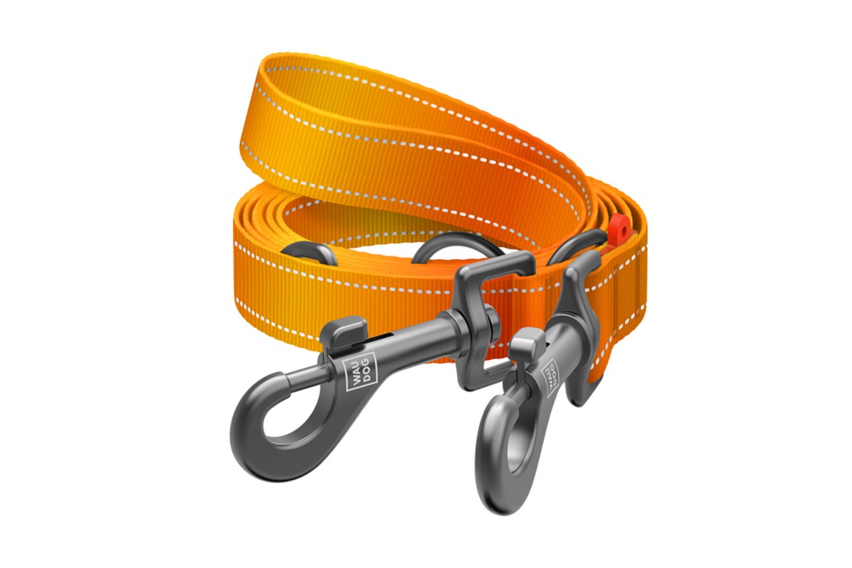 Поводок-перестежка для собак WAUDOG Nylon Mono, светоотражающий, М, Ш 20 мм, Д 300 см, оранжевый