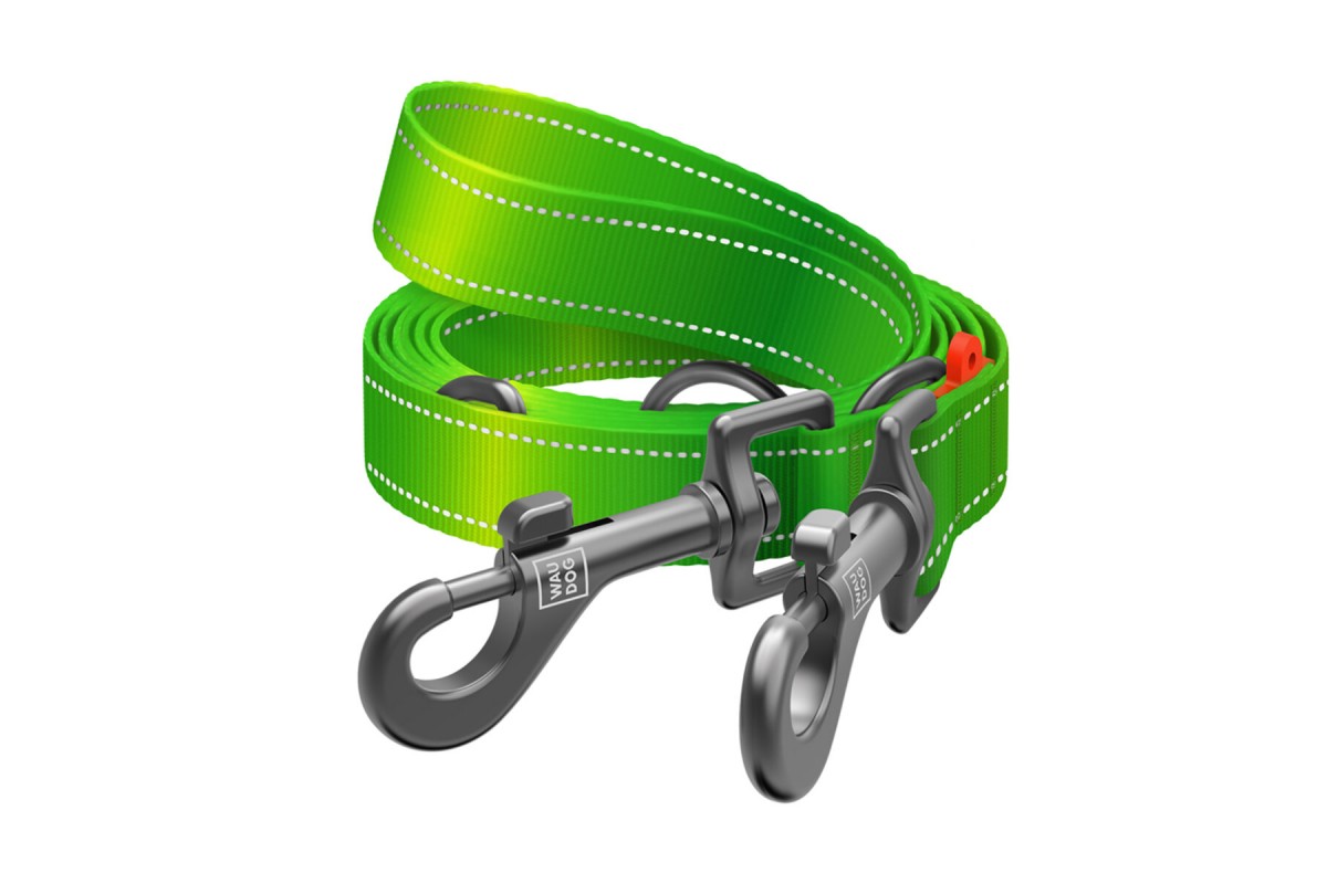 Поводок-перестежка для собак WAUDOG Nylon Mono, светоотражающий, М, Ш 20 мм, Д 300 см, салатовый