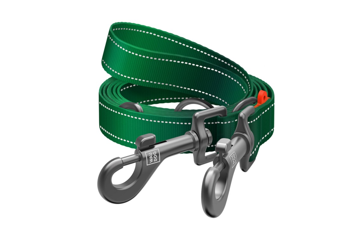 Поводок-перестежка для собак WAUDOG Nylon Mono, светоотражающий, М, Ш 20 мм, Д 300 см, зеленый